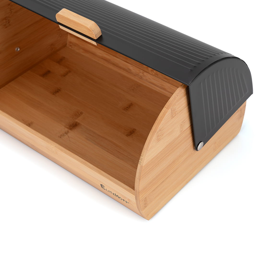 Chlebak bambusowy pojemnik na pieczywo 39x28,5x18,5 cm z czarną pokrywą