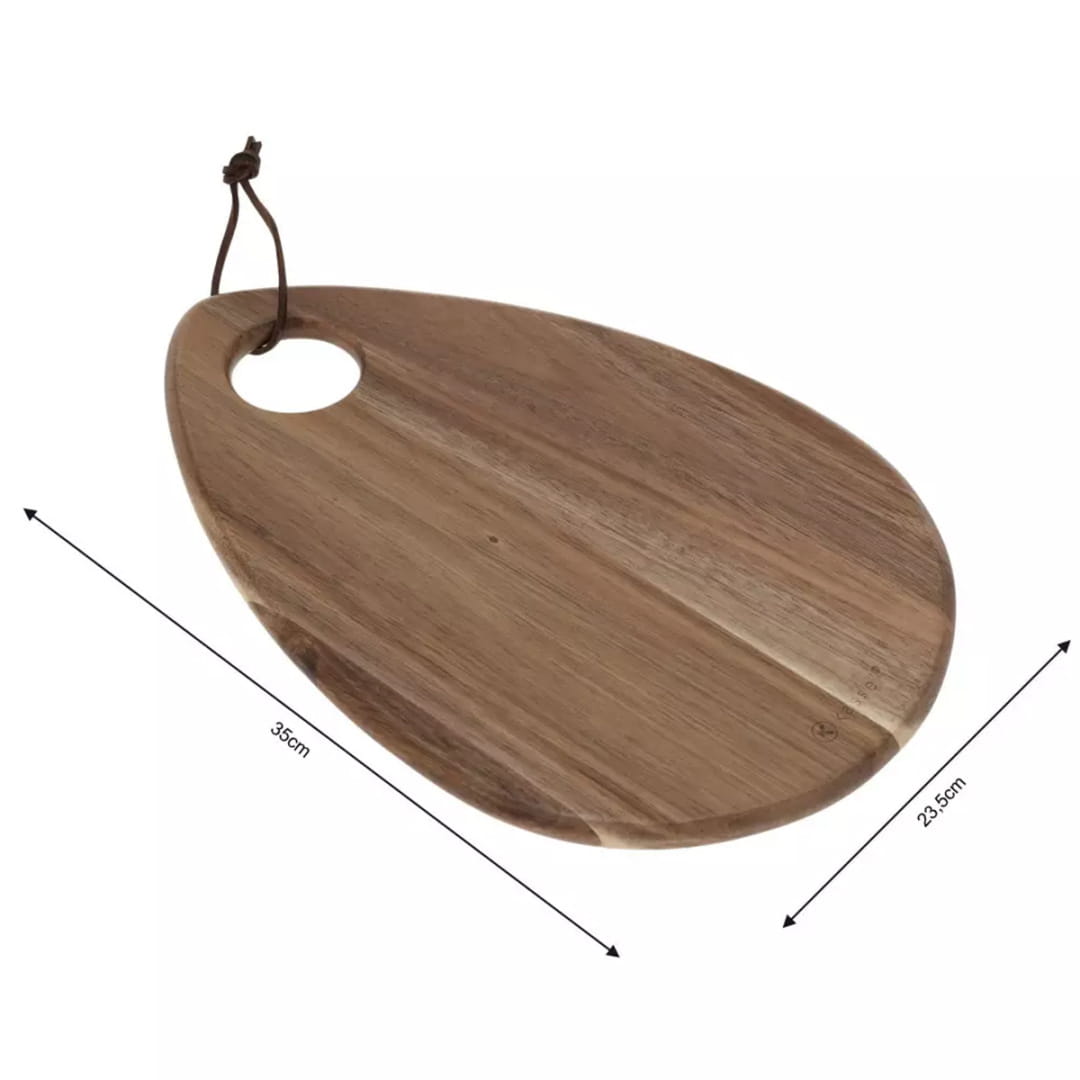 Ekologiczny materiał użyty do produkcji deski zapewnia dużą trwałość, solidność i estetyczny wygląd. Drewno akacjowe jest twarde i wytrzymałe, bardziej odporne na ścieranie i uszkodzenia, a jednocześnie nie tępi noży. Deska może służyć także do serwowania serów i wędlin.