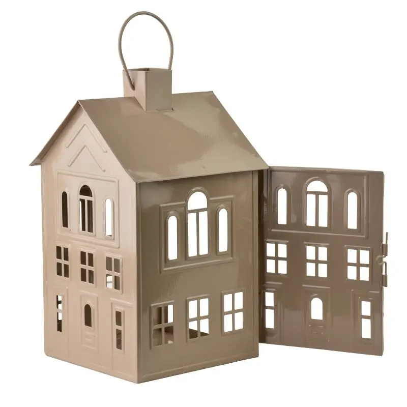 Domek lampion metalowy 20,3x20x33,8cm ROGER beżowy