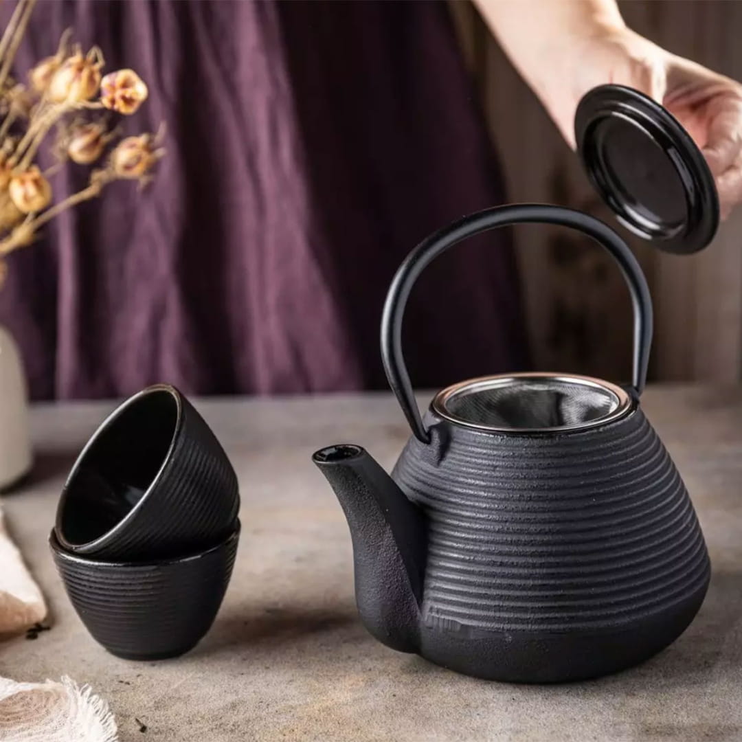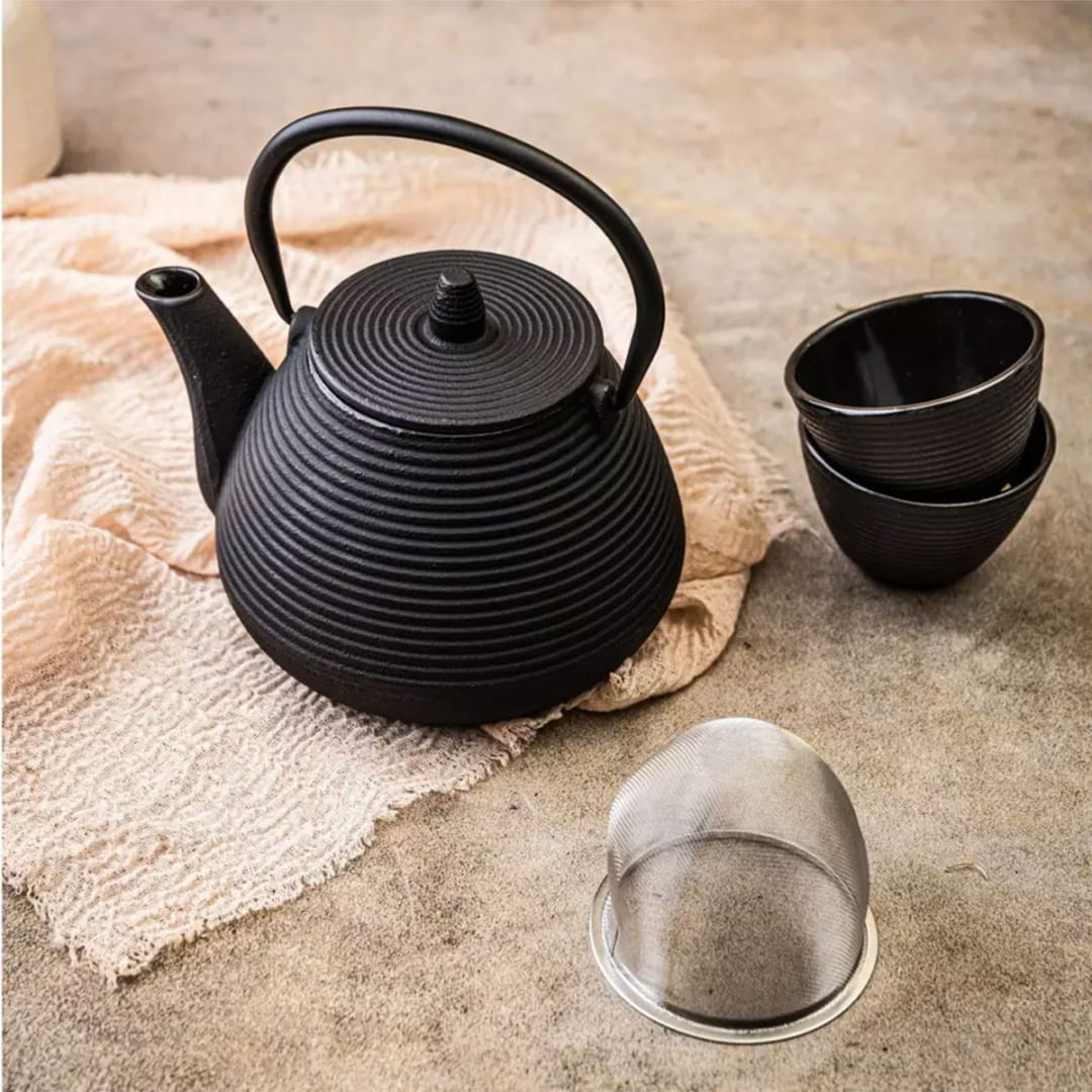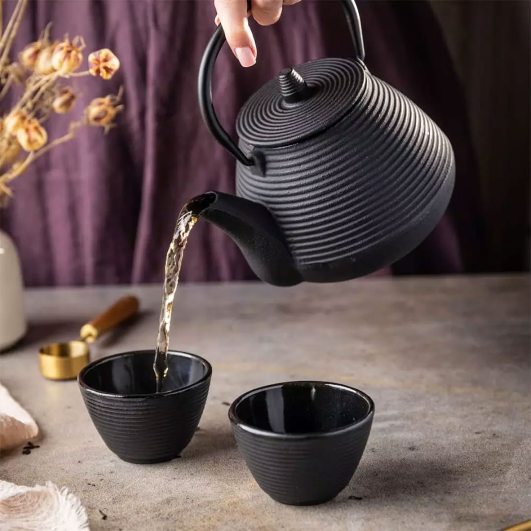Zaparzacz żeliwny z filtrem - klasyka spotyka funkcjonalność. W zestawie 2 żeliwne filiżanki 115 ml. Zestaw idealny do se0rwowania zielonej herbaty.