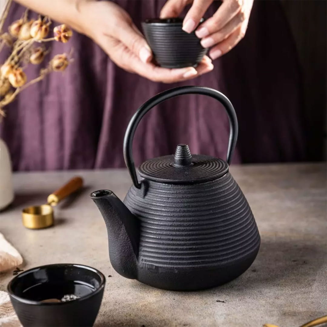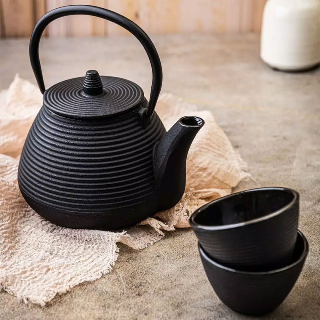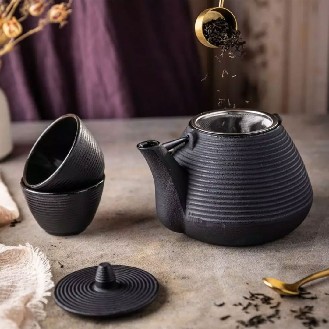 Zaparzacz żeliwny z filtrem - klasyka spotyka funkcjonalność. W zestawie 2 żeliwne filiżanki 115 ml. Zestaw idealny do se0rwowania zielonej herbaty.