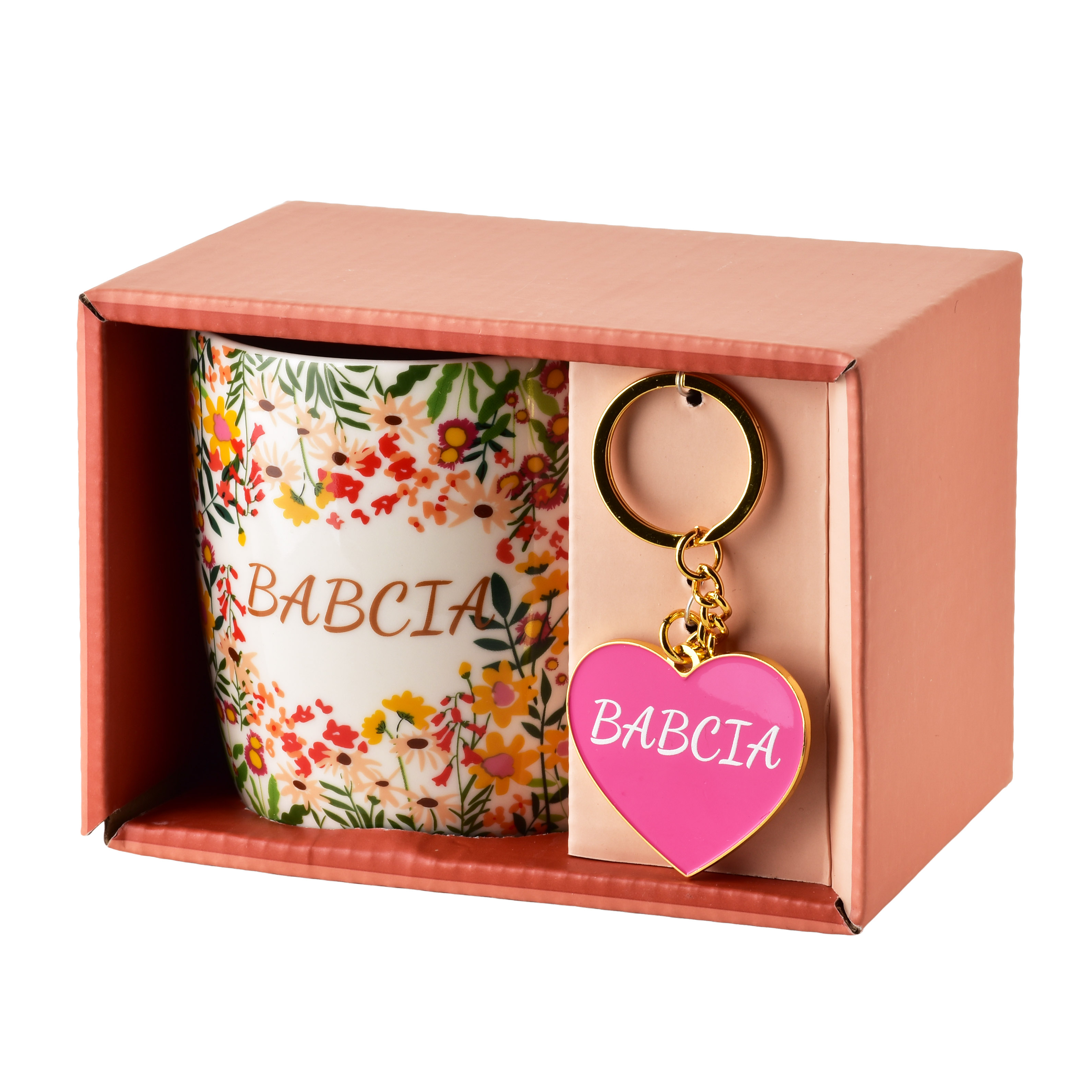 Kubek z brelokiem 350 ml BABCIA KWIATY – porcelanowy kubek prezentowy MONDEX