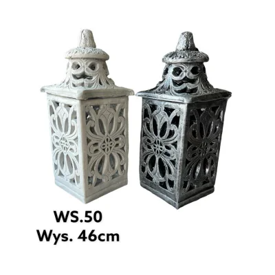 Złoty lampion o wymiarach 18,5x18,5xh50cm to luksusowy dodatek, który idealnie nadaje się do eleganckich wnętrz i ogrodów. Tworzy ciepłą atmosferę podczas wieczorów przy świecach.