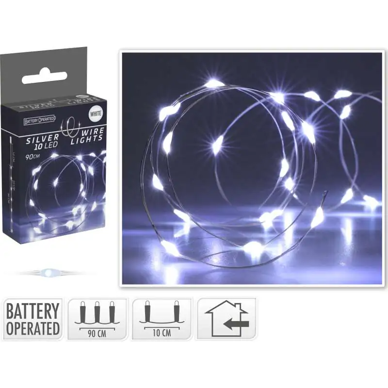 Łańcuch 10LED wewnętrzny biały na baterie 90cm