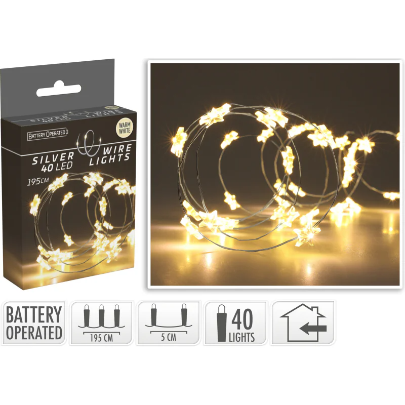 Łańcuch 40 LED Gwiazdki – Ciepłe Białe Światło dla Magii Świąt