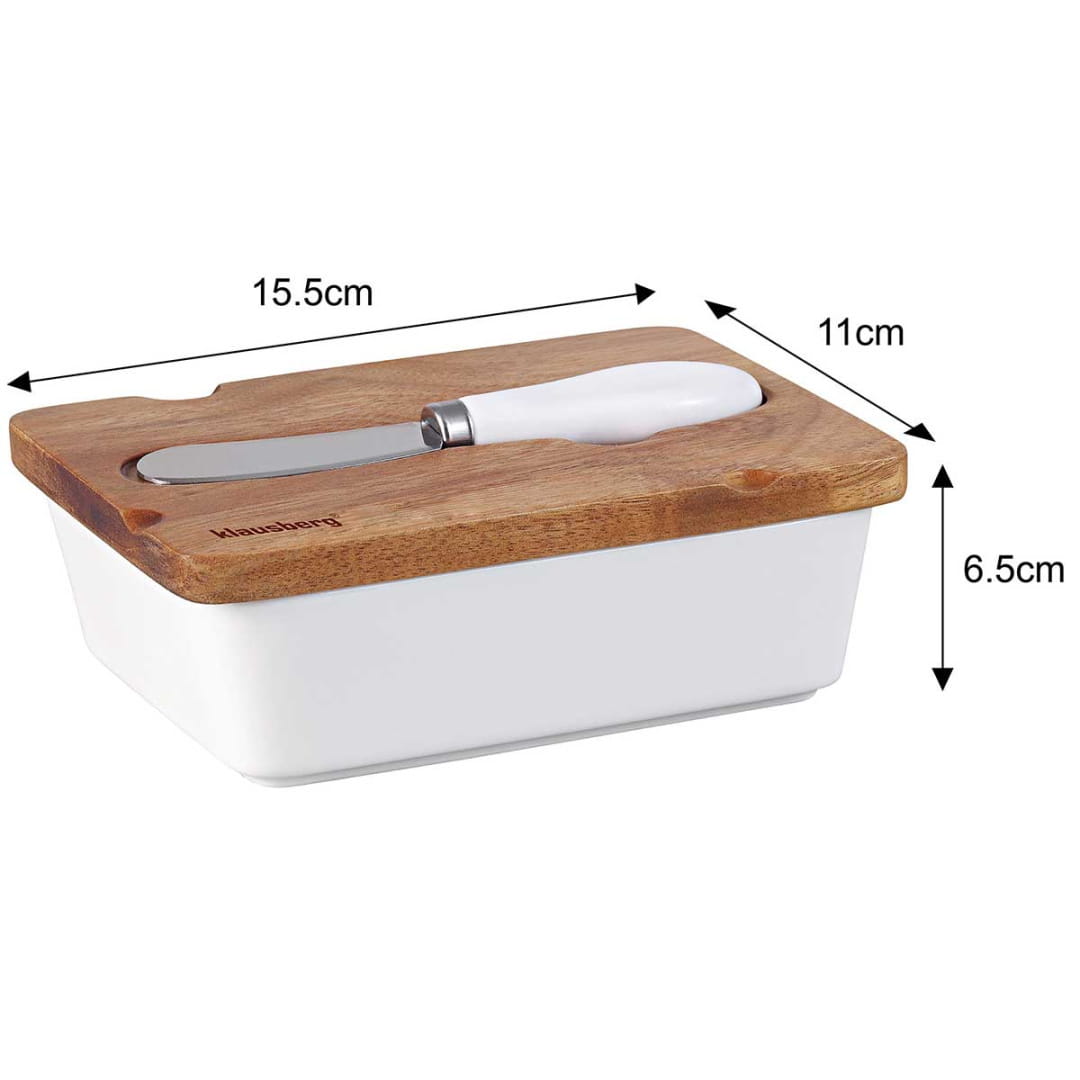 MASELNICZKA PORCELANOWA Z DREWNIANĄ POKRYWKĄ I NOŻYKIEM KLAUSBERG – BIAŁA