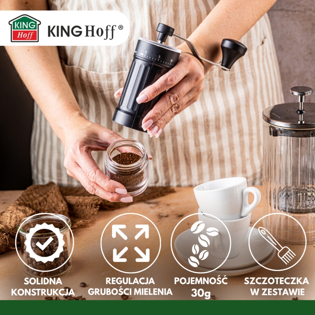 Młynek do kawy ręczny z regulacją KINGHOFF czarny