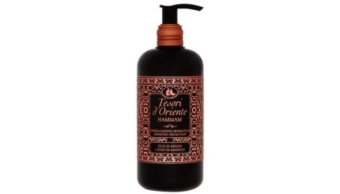 Mydło TESORI w pompce o pojemności 300ml, o zapachu Hammam, delikatnie myje skórę dłoni, pozostawiając na nich orientalny aromat i uczucie czystości.