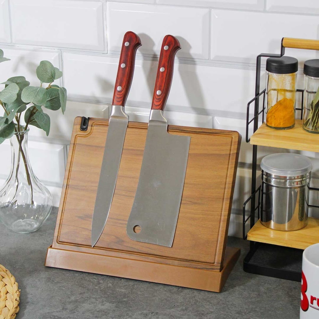 UNIWERSALNY DREWNIANY BLOK STOJAK MAGNETYCZNY NA NOŻE Z WBUDOWANĄ OSTRZAŁKĄ