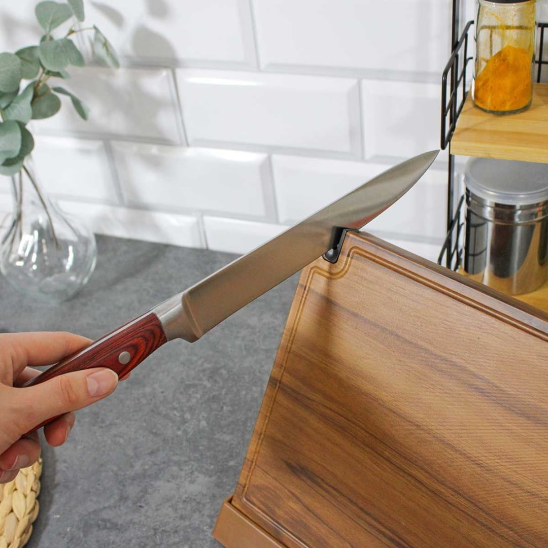Wbudowana ostrzałka pozwala na szybkie ostrzenie przed użyciem noża