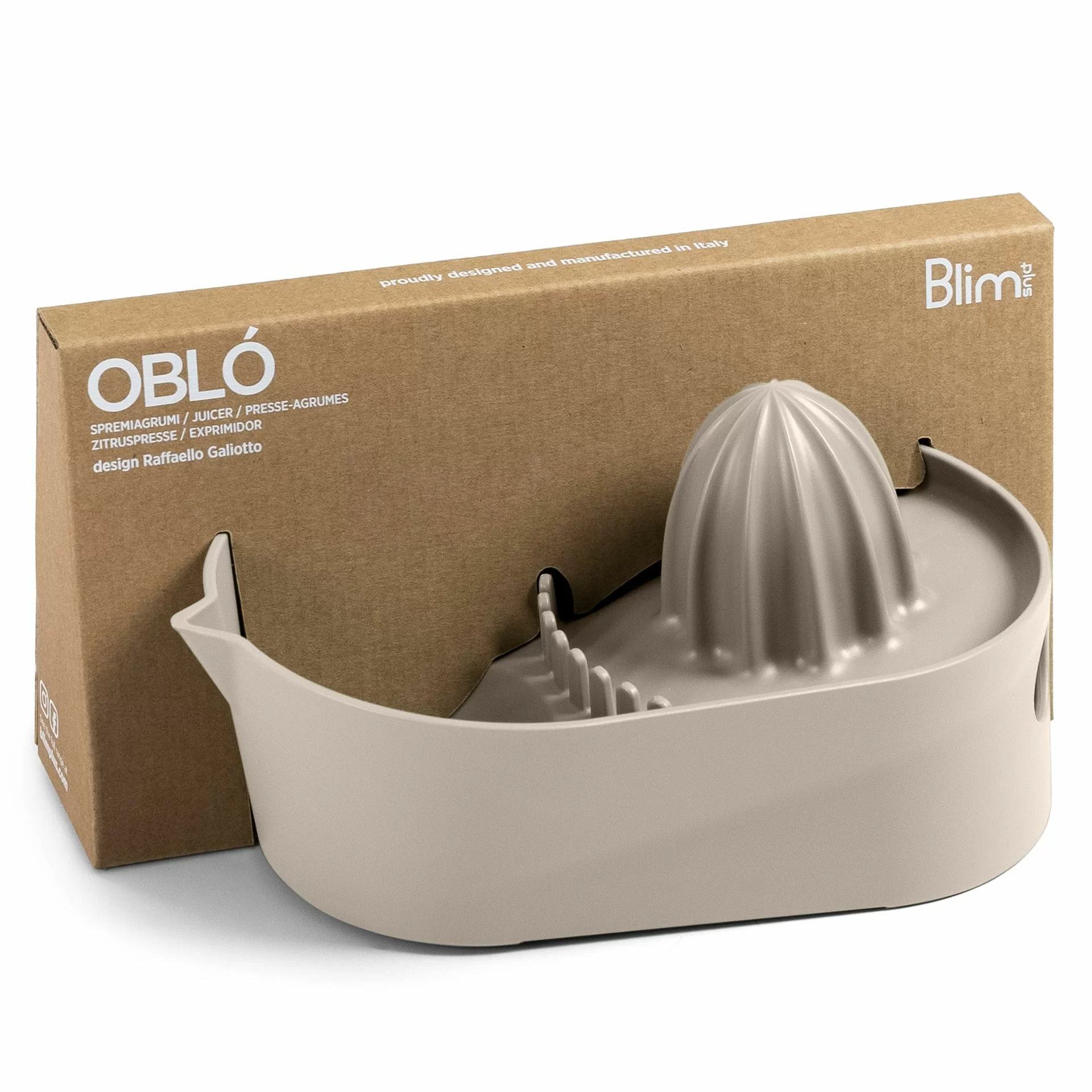 Stworzona z wysokiej jakości, trwałego i nietoksycznego polipropylenu, wyciskarka OBLÓ jest częścią kolekcji CREATE Blim Plus, zaprojektowanej przez uznanego włoskiego projektanta Raffaella Galiotto. Kolekcja ta charakteryzuje się pięknymi, pastelowymi barwami, unikalnym designem oraz dbałością o ergonomię i szczegóły, tworząc harmonijne i przydatne akcesoria kuchenne. Wszystkie produkty z tej linii są w pełni recyklingowalne, co podkreśla ich ekologiczny charakter.