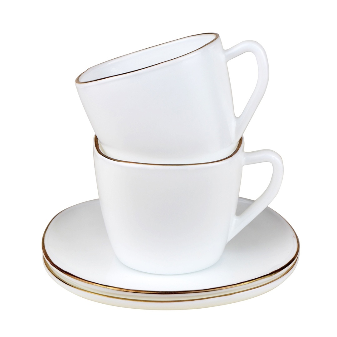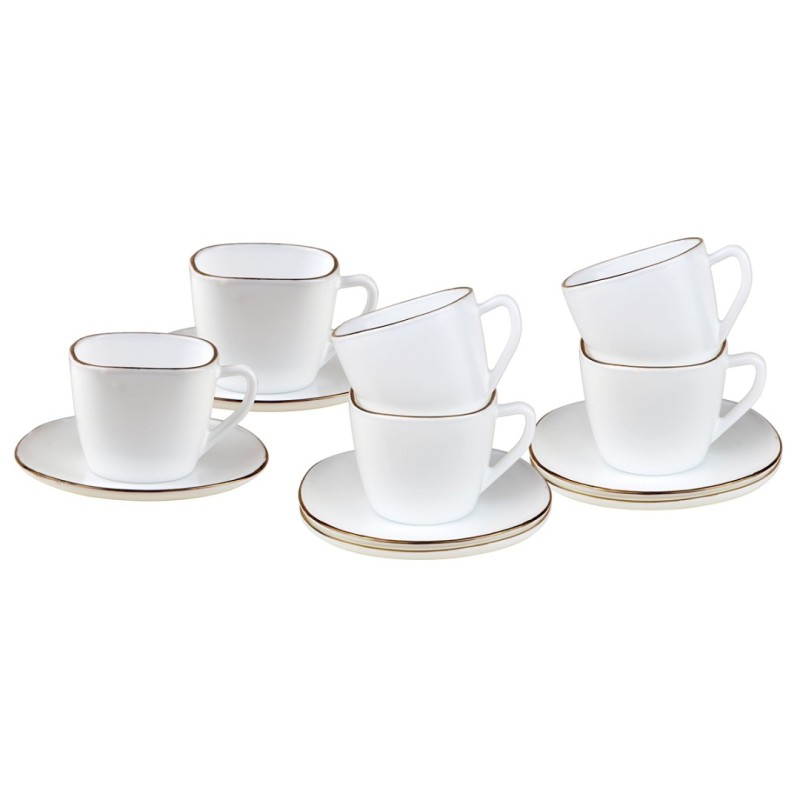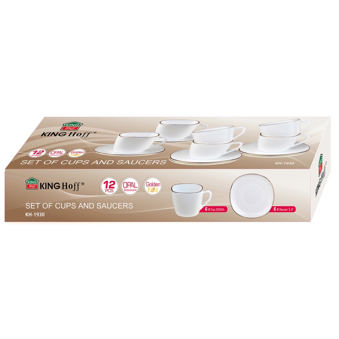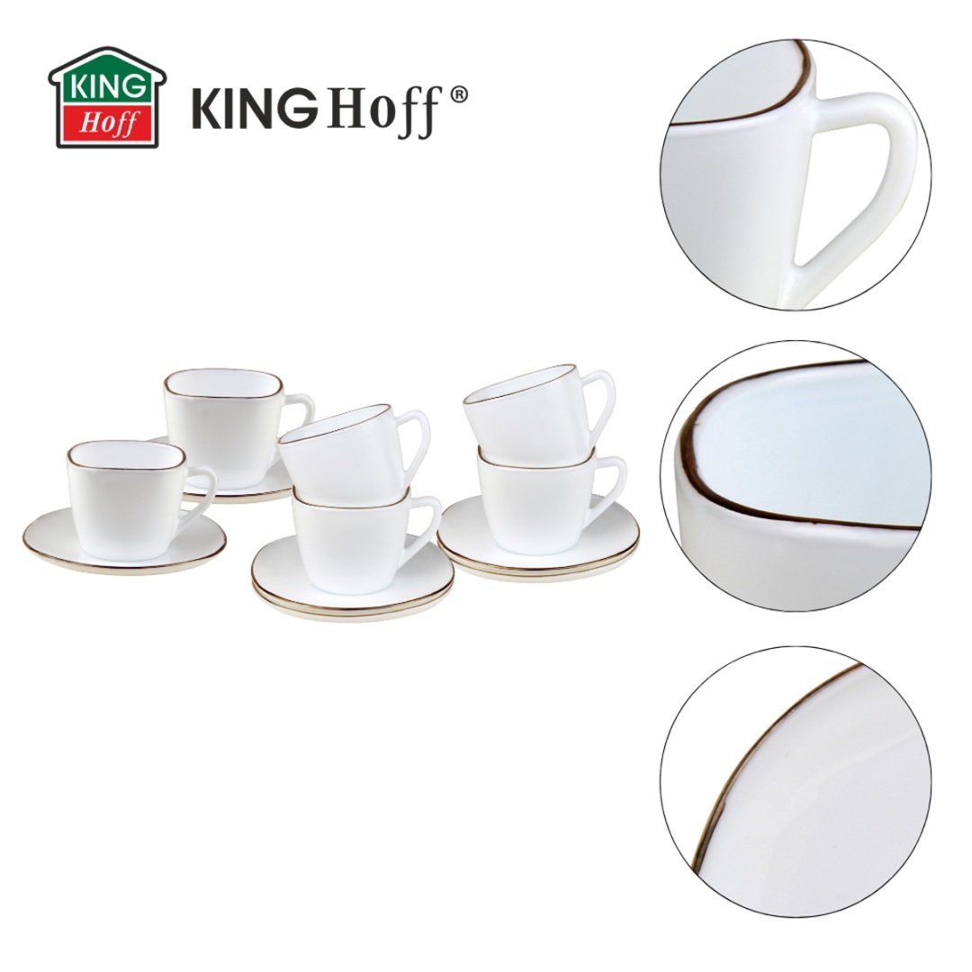 Zestaw kawowy 6 filiżanek ze spodkami KINGHOFF OPAL i złotą obwódką