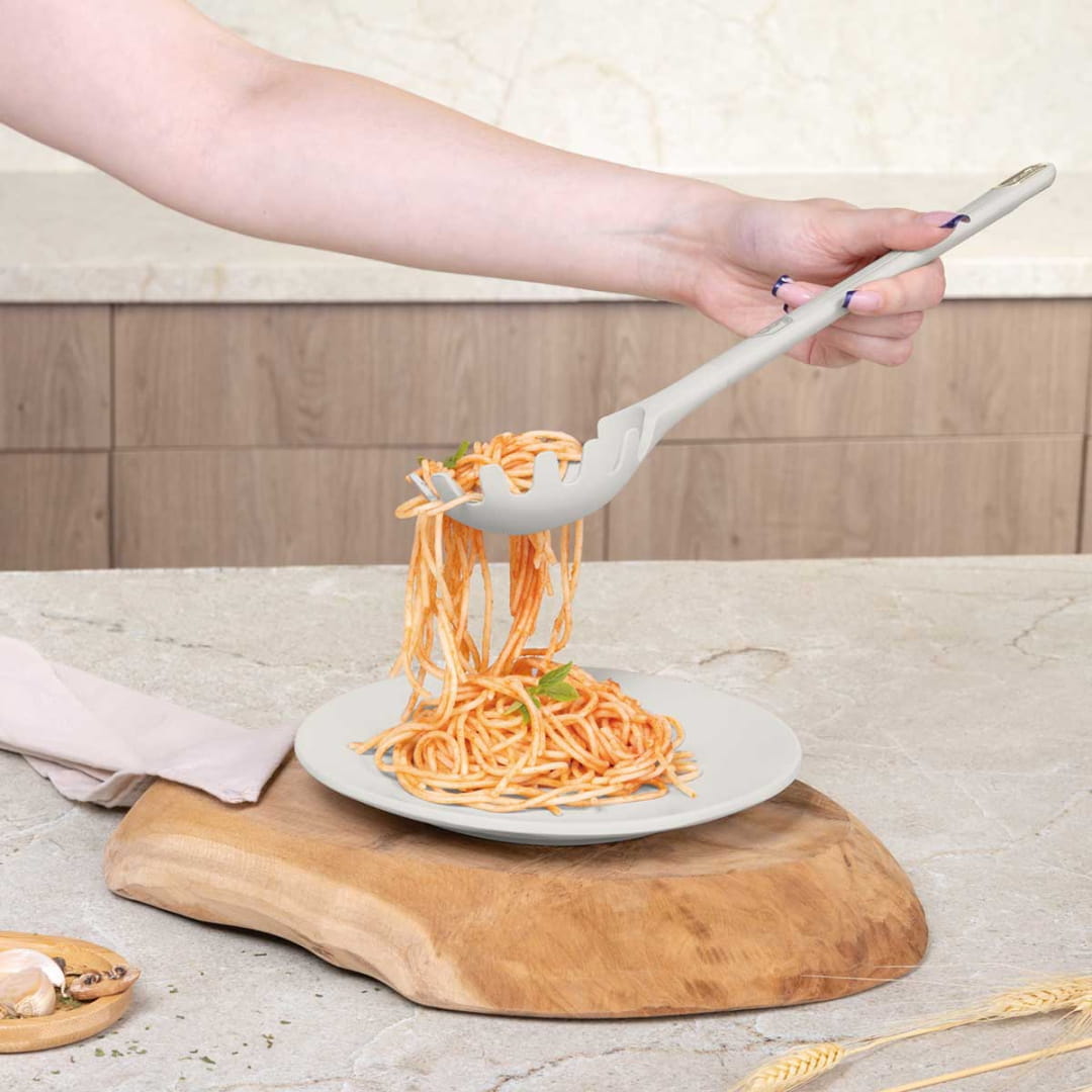 Ergonomiczny kształt rączek sprawia, że przybory pewnie i wygodnie trzyma się w dłoni. Wysokiej jakości tworzywo, z którego wykonane zostały sztućce jest odporne na wysokie temperatury. Przybory nie tworzą zarysowań na powierzchni naczyń.